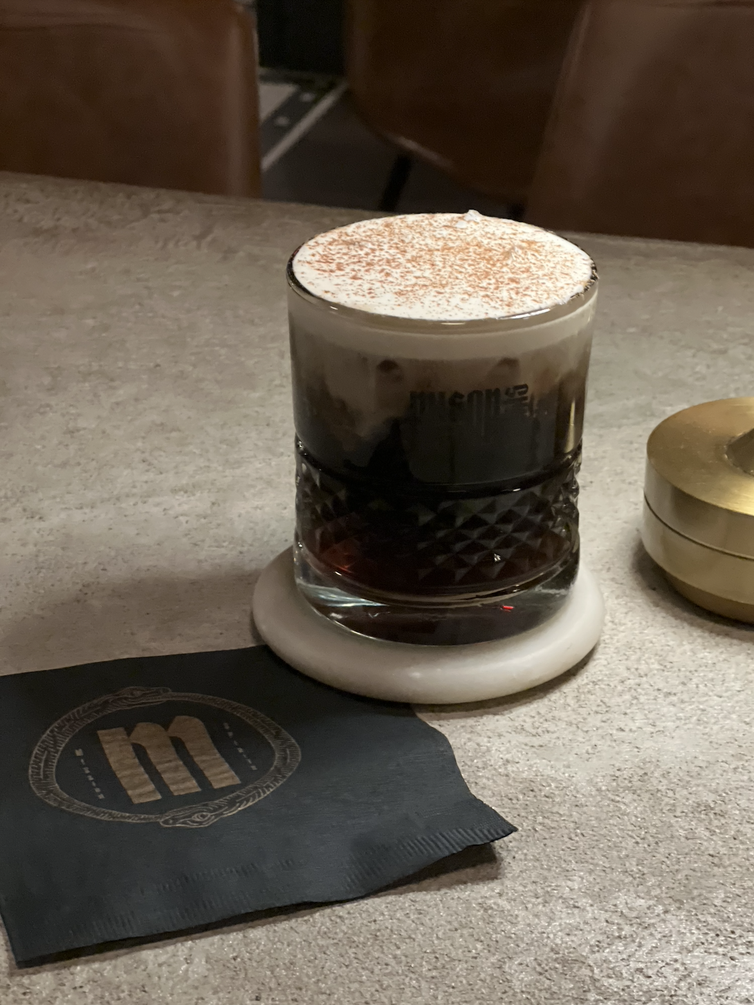 BARREL RESTED RUM, PECAN ORGEAT, IRISH BUTTER WASHED RUM, APPLE CIDER, BITTERS