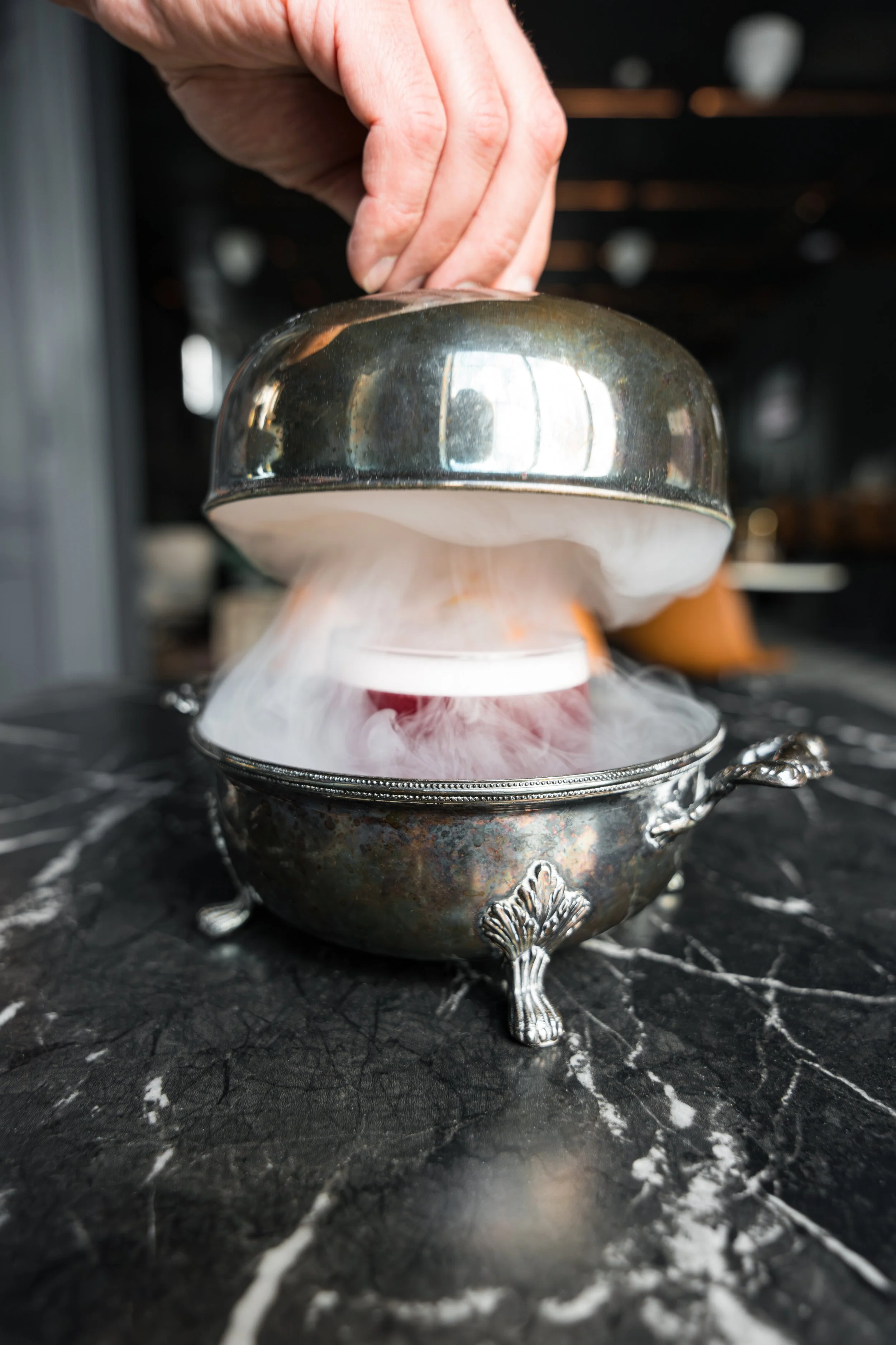 VODKA, COLD BREW COFFEE, SIMPLE SYRUP, VANILLA, CHOCOLATE BITTERS, SMOKED COFFEE BEANS